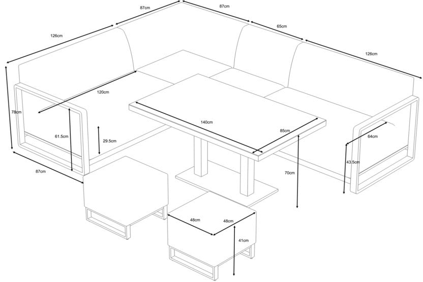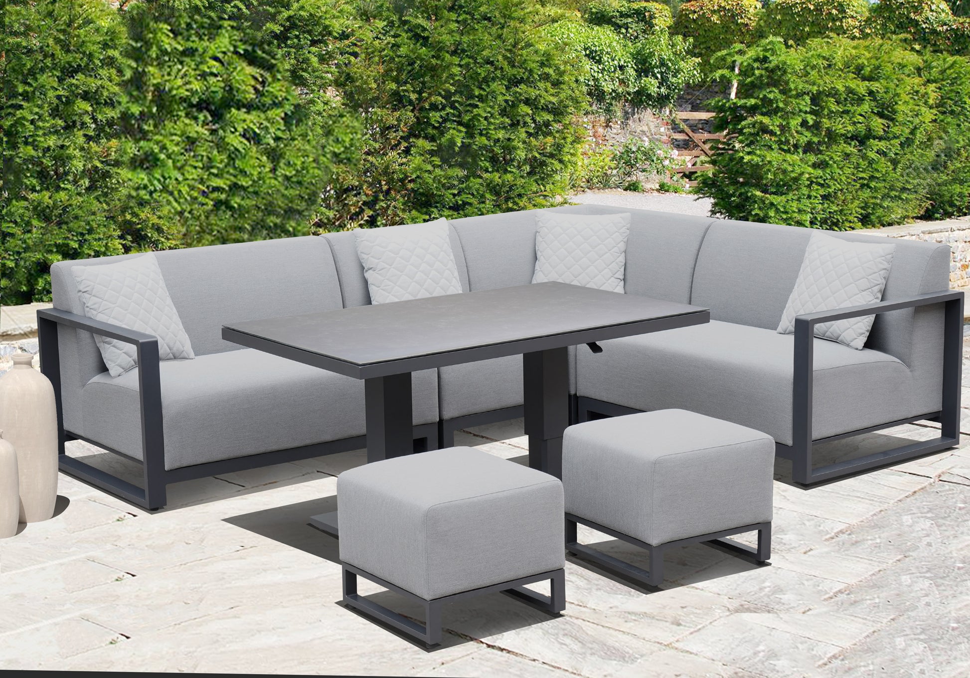 The ultimate solution for creating a stylish and comfortable outdoor seating area. This versatile, 7-seater set is designed to maximise space and provide ample seating for you and your guests. Right and left-handed configurations allow you to customise the layout and seamless integrate the set into your outdoor space.