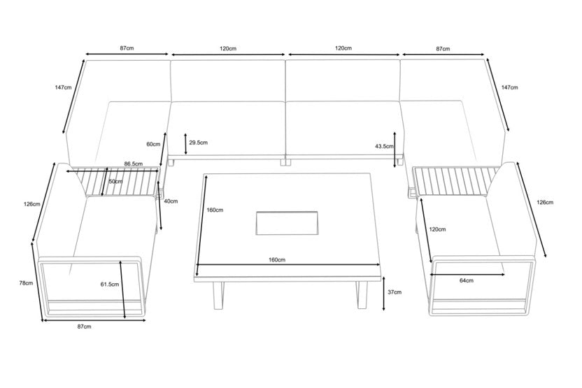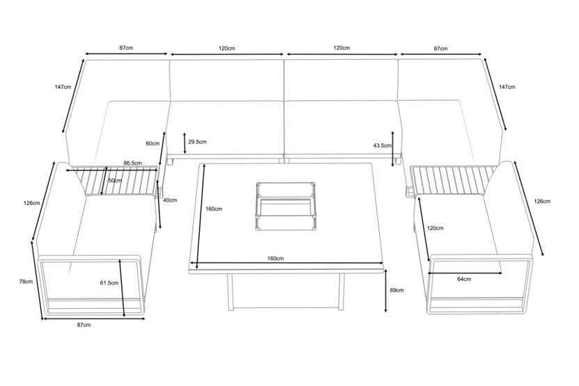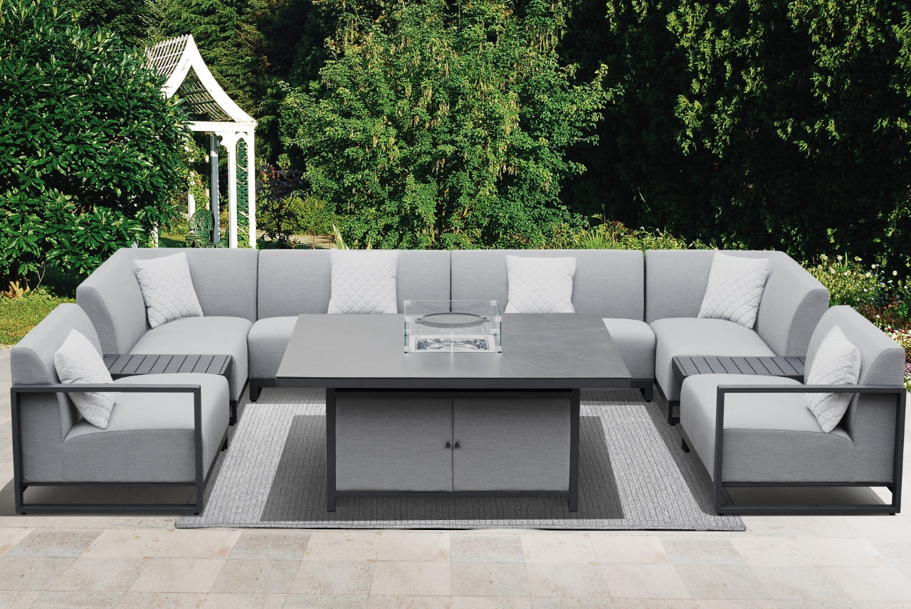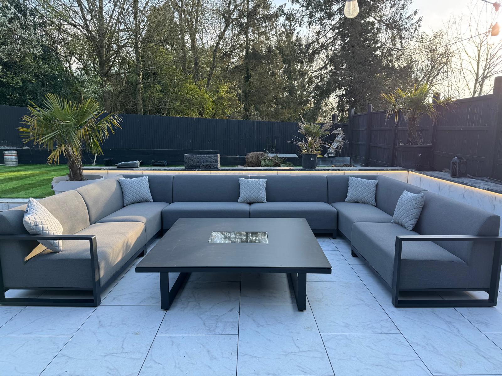 This outdoor sofa set offers ample seating for all of your guests, accommodating 10-12 people. The modular U-shaped design offers endless possibilities for customisation and can be enhanced with either a fire pit or an ice bucket table.