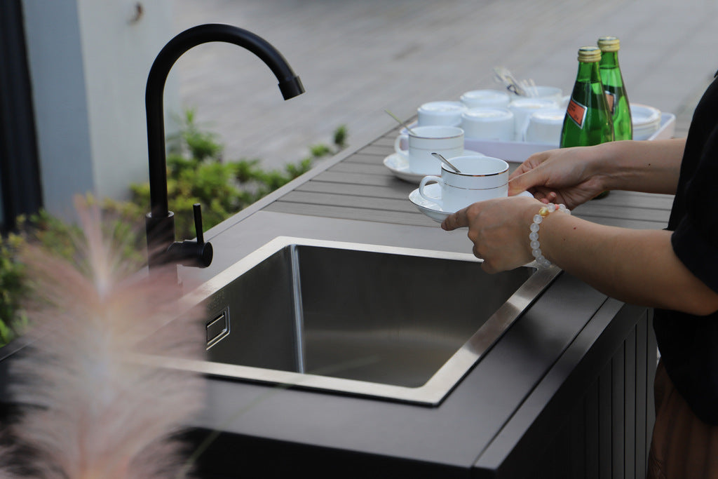 Our modular outdoor kitchen with a sink features a durable and weather-resistant construction, ensuring that it can withstand the elements and provide long-lasting performance. The sink is made from high-quality stainless steel, which is not only resistant to rust and corrosion but also easy to clean and maintain.